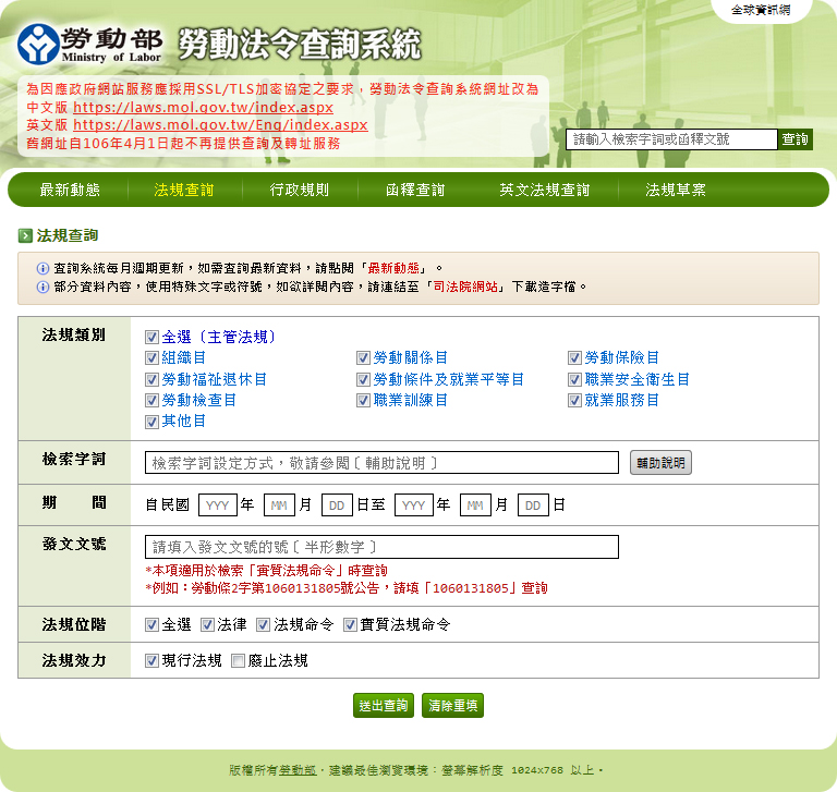 http://laws.mol.gov.tw/FLAW/index-1.aspx